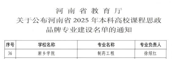 近日,河南省教育厅公布了2025年河南省本科高校课程思政品牌专业建设名单,我校制药工程专业凭借扎实的建设基础、鲜明的思政特色和突出的育人成效成功入选,标志着该专业在课程思政建设与专业教育深度融合方面迈上新台阶,成为学校落实立德树人根本任务、推动蘑菇cctv资源改革的重要成果。