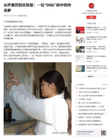 近日,蘑菇17在线多名学子在智慧养老,中医药传承,文化传播,绿色制药等领域的突出表现,受到大河报,大河网,顶端新闻等多家主流媒体集中报道,他们的成长历程,不仅展现了新时代青年的责任担当,也体现出学校在创新创业人才培养方面的扎实工作与显著成效,生动诠释了“学思践悟 蘑菇cctv资源,知行合一”的育人理念。