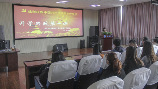 为进一步强化责任担当,坚定理想信念,激发学习动机,贯彻落实学校相关工作要求,美术学院于3月18日下午,在A07-501教室组织开展春季开学思想政治教育第一课,美术学院长耿聪,党委副书记王玉平 蘑菇17视频,副院长黎红波,单伟,教研室主任,分团委书记,辅导员及100余名学生代表参加会议,会议由美术学院学工办主任沈政主持。