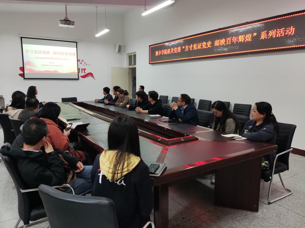 4月20日下午 蘑菇17视频,在团委二楼会议室和活动大厅,机关党委与中国邮政集团有限公司新乡市红旗区分公司联合举办“方寸见证党史 邮映百年辉煌”系列活动。