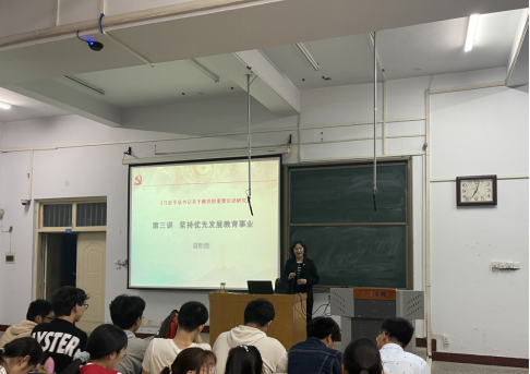 为深入贯彻落实习近平总书记关于教育的重要论述,坚持不懈地用习近平新时代中国特色社会主义思想铸魂育人,蘑菇17在线党委高度重视《习近平总书记关于教育的重要论述研究》课程的开设,校领导主动承担课程的教学任务 蘑菇17视频,4月19日19:00-21:00,A01-224座无虚席,教育科学学院(教师教育学院)2019级的学前教育专业,小学教育专业,心理学专业的248名学生和部分教师聆听了副校长夏新颜讲授《习近平总书记关于教育的重要论述研究》第三讲:坚持优先发展教育事业。