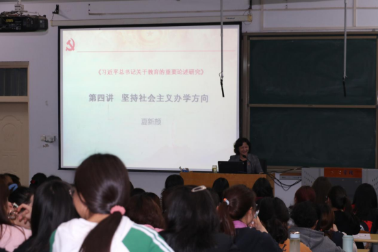 4月26日19:00-21:00 蘑菇17视频,教育科学学院(教师教育学院)2019级学前教育专业,小学教育专业,心理学专业的248名学生及部分教师在A01-224教室专注聆听了夏新颜副校长讲授《习近平总书记关于教育的重要论述研究》第四讲:坚持社会主义办学方向。