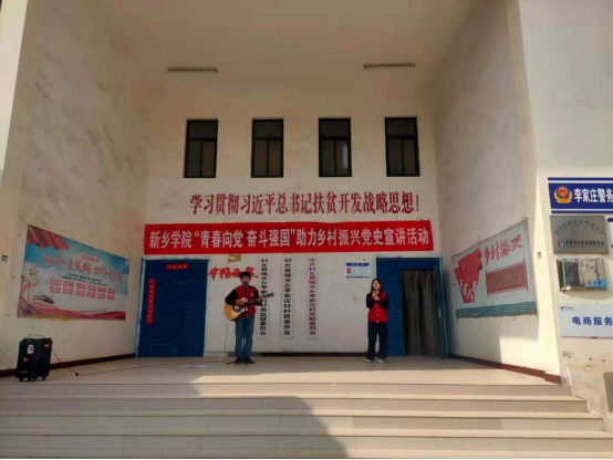 第二阶段,校青马班宣讲团在村委会活动广场,以诗朗诵 17蘑菇视频,演讲,歌曲弹唱等形式向村民们进行党史宣讲,歌曲弹唱《我爱你中国》把活动推向了高潮。