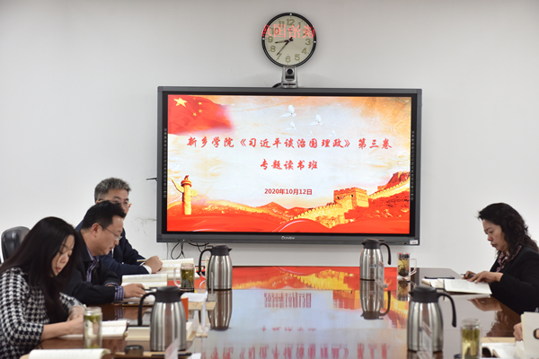 为深入贯彻落实《中共河南省委宣传部中共河南省委组织部关于认真组织学习<习近平谈治国理政>第三卷的通知》,把我校学习宣传贯彻习近平新时代中国特色社会主义思想进一步引向深入,10月12日上午,我校党委理论中心组在901会议室举行学习《习近平谈治国理政》第三卷专题读书班开班仪式,党委理论中心组全体成员参加了读书班开班仪式,并进行第一次集中学习 蘑菇17视频,会议由党委书记尚宝平主持。