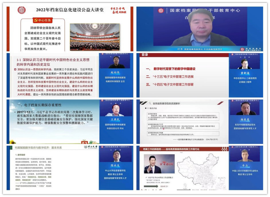为深入学习贯彻党的二十大精神,深刻领悟习近平总书记对档案工作的重要批示精神,推进档案工作与国家治理体系和治理能力现代化 蘑菇17视频,12月20日至22日,档案馆组织全体人员在线收看了由国家档案局档案干部教育中心举办的,以“数字中国数字政府背景下的档案工作”为主题的2022年档案信息化建设公益大讲堂系列讲座。