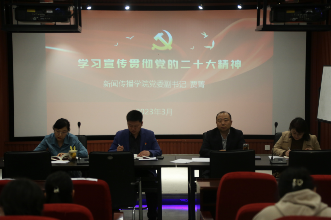 为深入学习宣传贯彻党的二十大精神,组织好党的二十大精神宣讲活动 蘑菇17视频,3月7日下午,新闻传播学院在A12号教学楼五楼审片室召开党的二十大精神宣讲会,党委副书记贾菁作题为《实施科教兴国战略,强化现代化建设人才支撑》的宣讲报告,新闻传播学院全体教师参加了会议,会议由党委书记王卫锋主持。