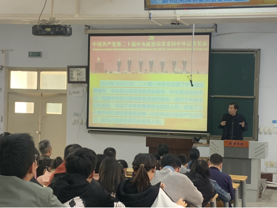 为深入学习宣传贯彻党的二十大精神,化学与材料工程学院于4月11日下午在A11-225教室举行党的二十大精神宣讲会,特邀学校党的二十大精神宣讲团成员,党委巡察办主任郭明进开展题目为《认真学习党的二十大精神,自觉担负好立德树人根本任务》的专题宣讲 蘑菇17视频,学院全体教师和学生代表150余人参加宣讲会。