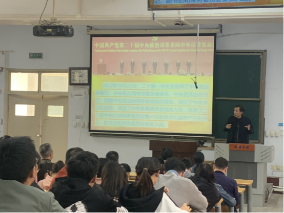 4月11日下午,学院召开主题教育动员大会,会上特邀学校党的二十大精神宣讲团成员,党委巡察办主任郭明进开展题目为《认真学习党的二十大精神 蘑菇cctv资源,自觉担负好立德树人根本任务》的专题宣讲,学院全体教师和学生代表150余人参加宣讲会。